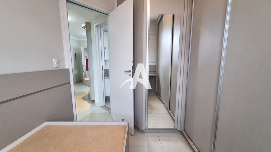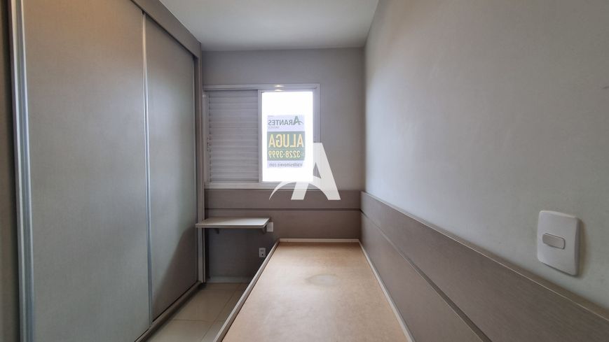 Apartamento localizado no bairro Segismundo Pereira, com 02 quartos sendo 01 com armário e box casal, mesas de cabeceira e sacada fechada com blindex e o outro quarto com box de solteiro com cama auxiliar, banheiro social com box e armário, sala em 02 ambientes com painel para TV, cozinha planejada com armários, área de serviço com armário e 01 vaga de garagem.