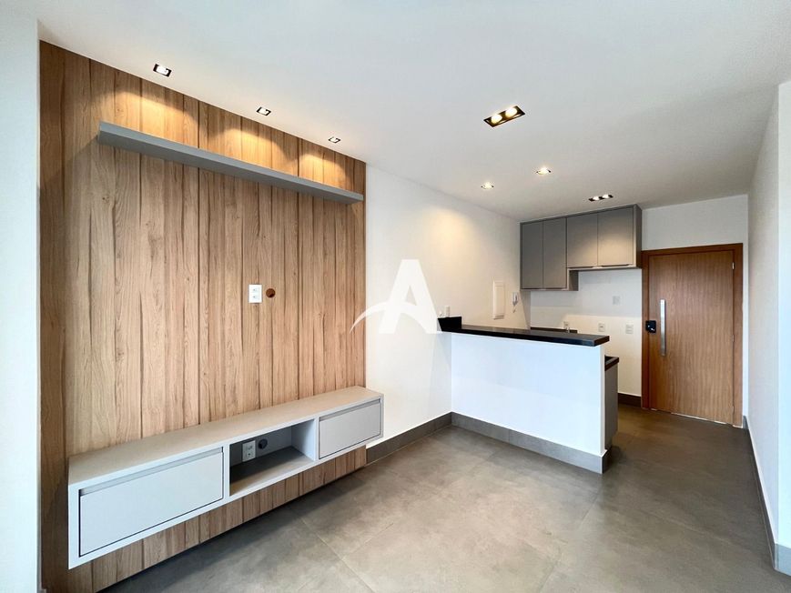 Flat/Stúdio localizado no bairro Jardim Sul, com 01 quarto, banheiro, sala ampla integrada com sacada, cozinha, área de serviço e 01 vaga de garagem coberta presa