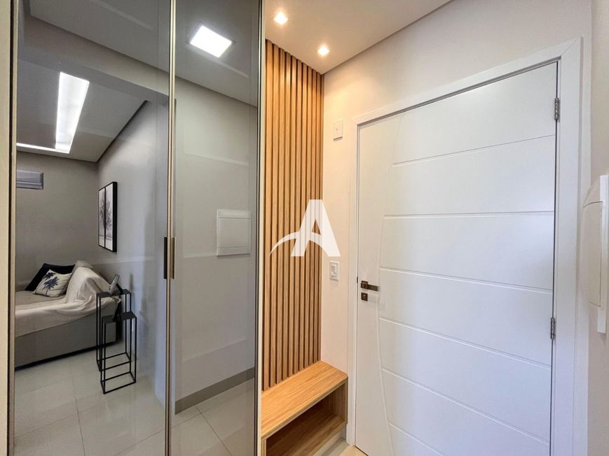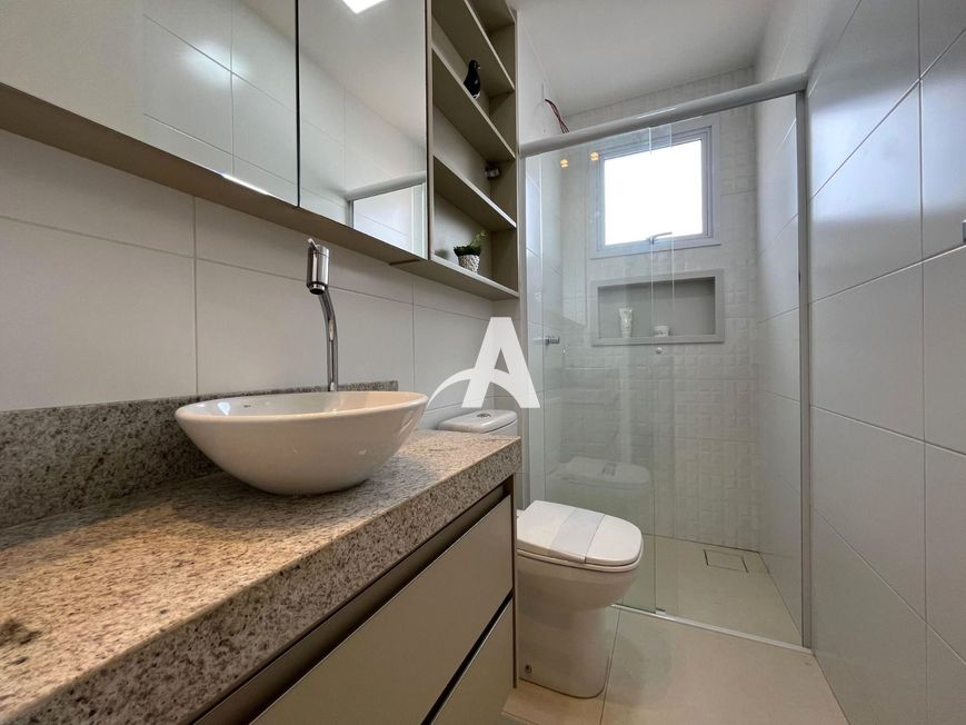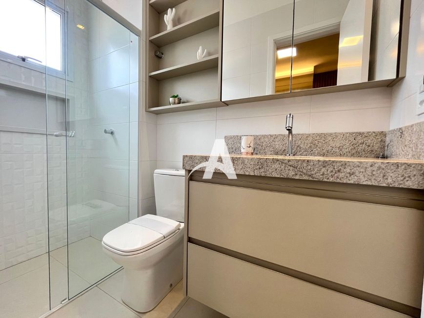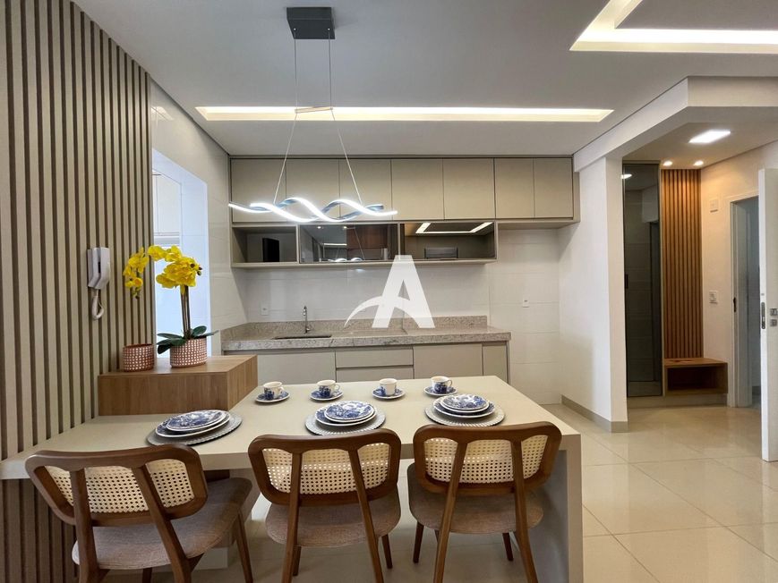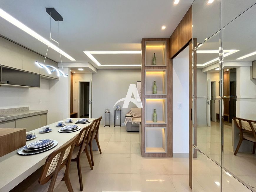 Apartamento localizado no bairro Santa Monica, com 02 quartos com armário, sendo 01 suíte, banheiro social, e suíte com box e armário, sala em 02 ambientes com painel de TV, cristaleira, cozinha com armários integrada com sacada, área de serviço com armário, sacada com cortinas de vidro, garagem para 02 carros.