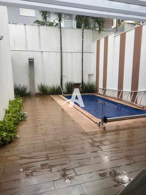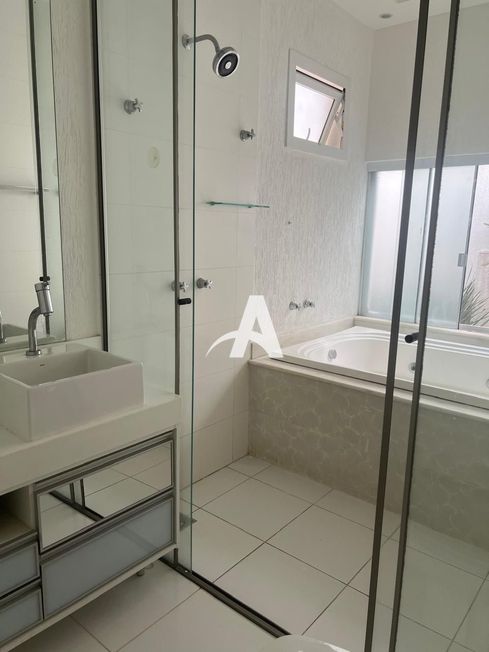 Casa estilo sobrado em condomínio fechado, com sala de visitas em 02 ambientes com pé-direitoduplo, escritório, sala de TV com painel, cozinha planejada, lavanderia com armários, 2º pavimento conta com 03 suítes completas com ar-condicionado, cortinas automatizadas, sendo 01 com banheira de hidromassagem e banheiro social