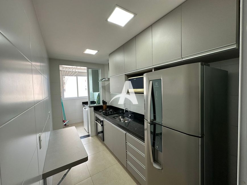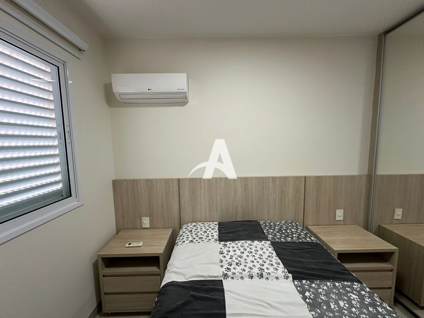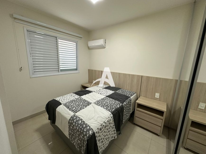 Apartamento mobiliado localizado no bairro Santa Monica, com 02 quartos com armários, ambos com camas, 01 suite com armário e box, sala ampla em 02 ambientes com painel e rack, tv, sofa, mesa com cadeiras, varanda gourmet com churasqueira, bistro com cadeiras, pia com armarios, banheiro social com armário e box, fogão, geladeira, microondas e alguns utensilios, area de serviço com maquina de lavar, elevador e uma vaga de garagem para até 02 carros.